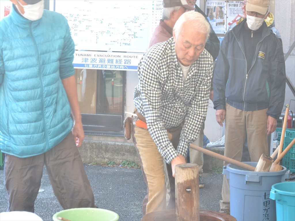 コロナ禍で残念ながらPCR検査した人だけが餅つき参加です。